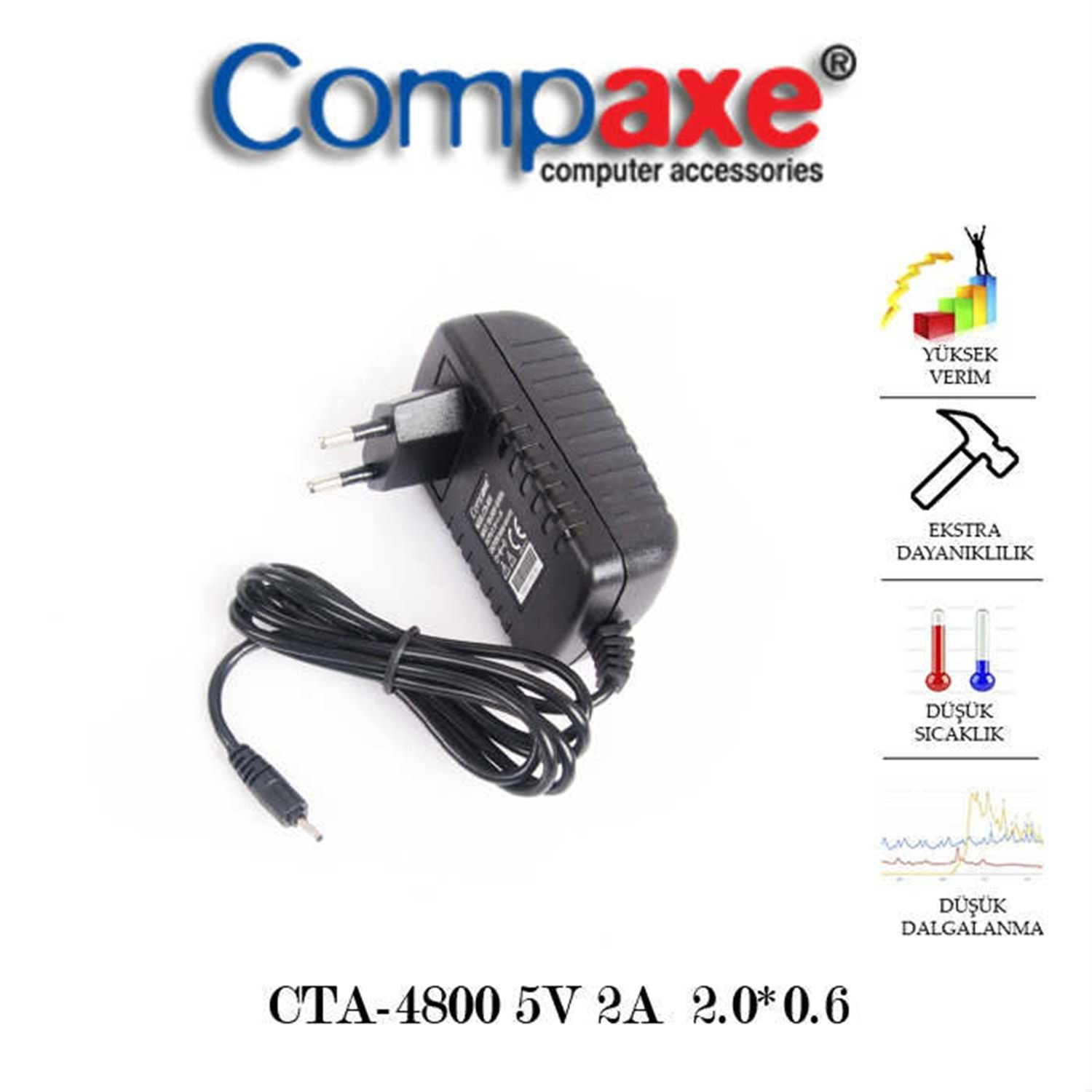Compaxe CTA-4800 5 Volt 2 Amper 2.0mm x 0.6mm Tablet Adaptörü