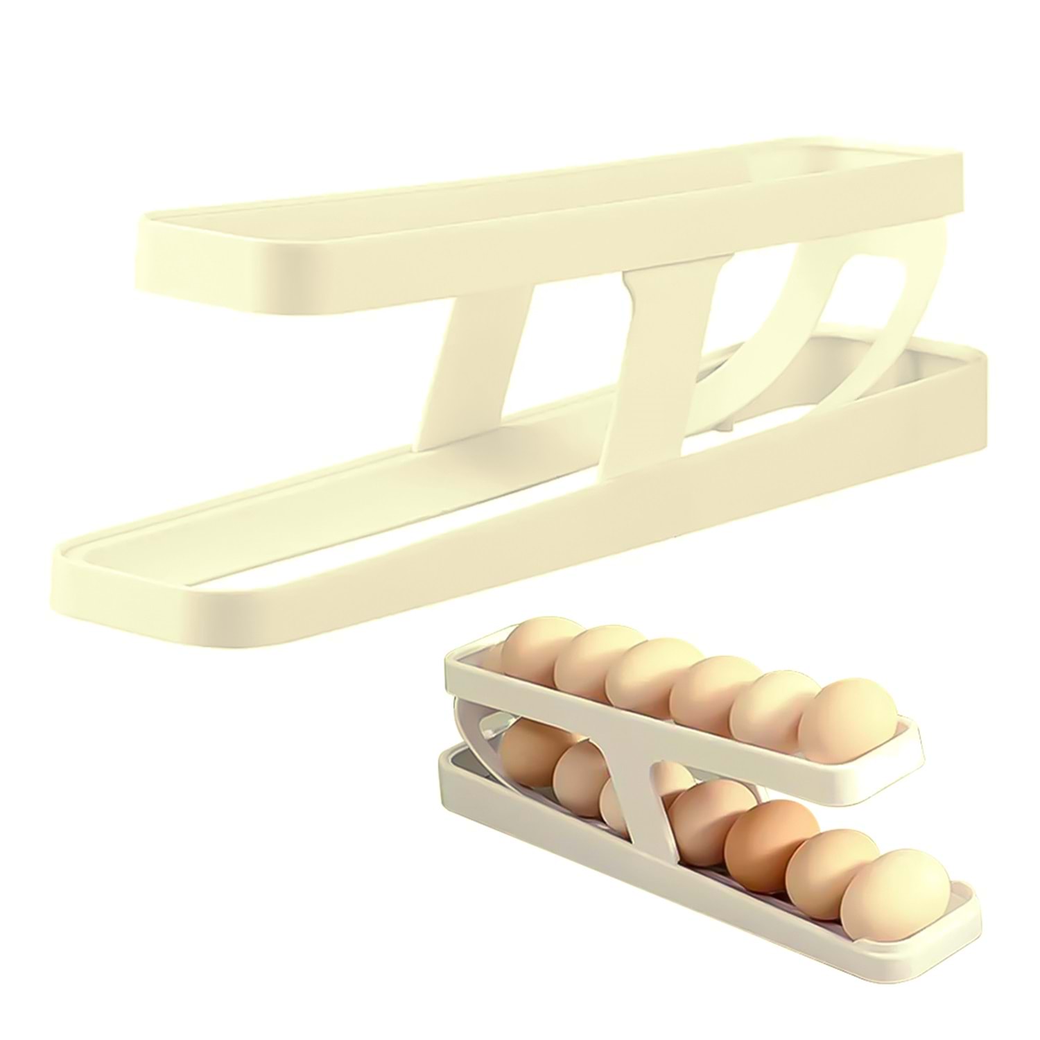 Yerden tasarruf edin: Bu yuvarlanan yumurta tutucu ile yumurtalarınıza kolay ve hızlı erişebilirsiniz. Üzerinde 15 yumurta saklanabilen iki kata ve buzdolabınıza uyan ince bir gövdeye sahiptir.